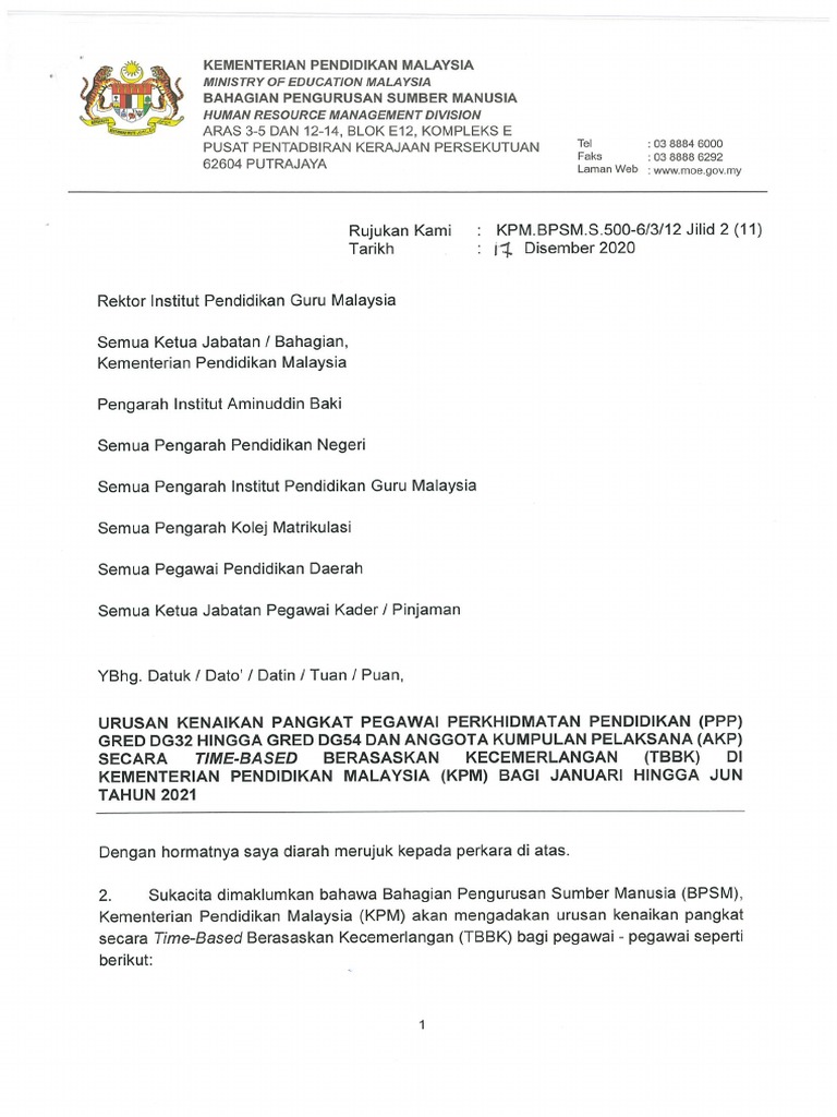 . Surat Siaran Urusan Kenaikan Pangkat PPP 2022 TBBK Download. Kenaikan Pangkat Secara Time Based Kecemerlangan TBBK DG44.